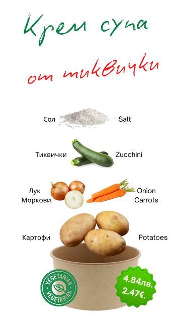 Тиквички, пресен копър, картофи, лук, моркови и сол.
